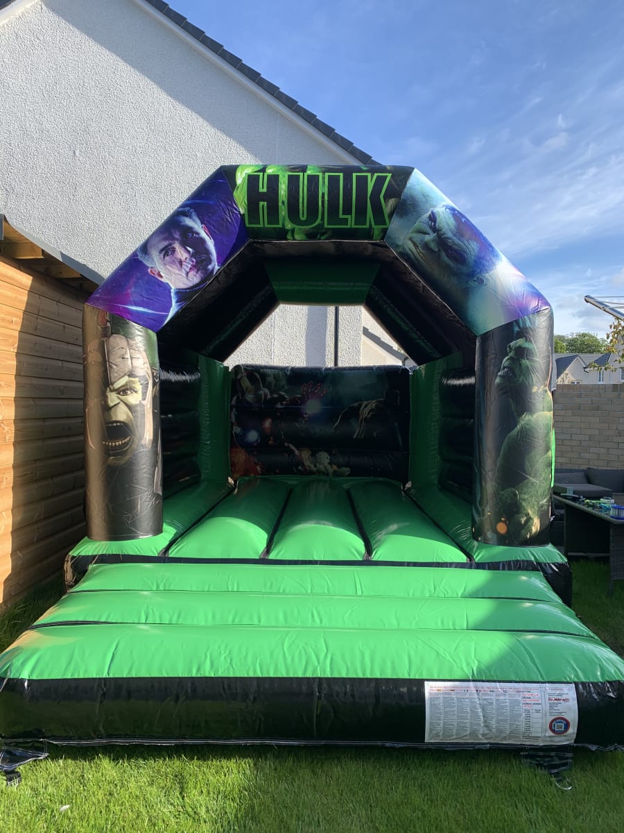 The Incredible Hulk has got to be one of the boys favourite super heroes & this awesome Incredible Hulk Bouncy Castle has got to be the ultimate party entertainment for them. The Incredible Hulk is able to transform from human to the ultimate SMASHING machine and when transformed he is able to jump incredible distances as well as having ultimate strength. Any small Hulk fan will love this Hulk bouncy Castle.