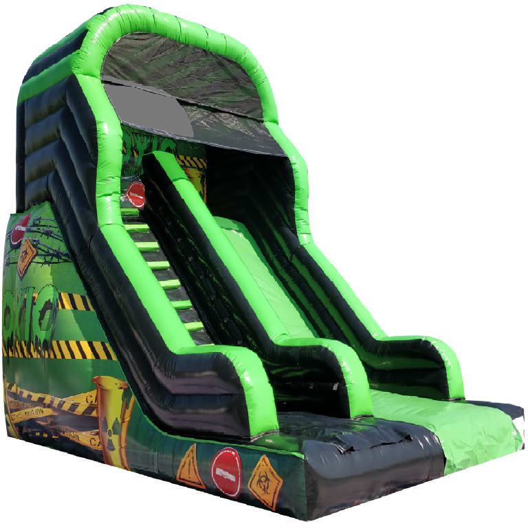 Our giant slide is very big and quite imposing but it will soon be dwarfed by a new one which is almost twice the size! With colourful graphics and lots of steps to climb up it's challenging for younger kids but they do manage. This castle comes complete with loads of anchor points and ropes from anchor points higher up to make it very stable.