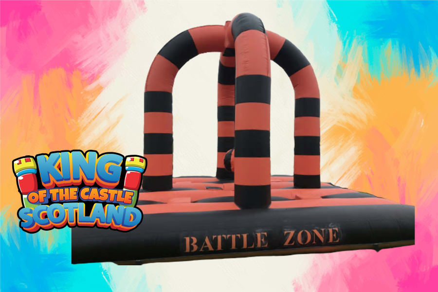 This Battlezone must only be used for four contestants at a time in human demolition mode or two contestants at a time in gladiator duel mode. This unit is not a bouncy castle and must not be used as such. When hired overnight, the headgear, wrecking ball and pugil sticks must be stored in a dry location to prevent them from getting wet.
