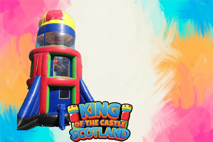 Whilst up at the top of the 35ft tall tower, the riders really can soar up in the clouds and wait for the countdown!! The air doors are zipped open and the air pressure is released causing the rider to drop inside the rocket tower and experience the true free-fall effect felt by real parachute extremists yet safely inside the inflatable surround.